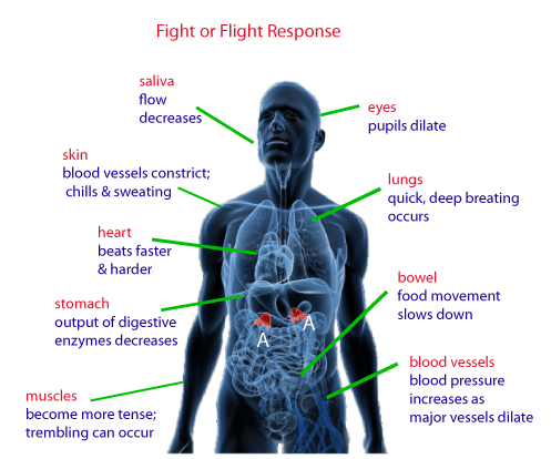 నవీన  నాగరికత లో  మానవులకు  ‘ ఈ పరుగు లేక పోరు  ప్రతి క్రియ ‘ స్వల్ప కాలం కాక , నిరంతరం అయింది.  అయింది అనడం కన్నా మనం చేసుకుంటున్నాము అని అంటే స్పష్టం గా ఉంటుందేమో ! కారణాలు ఏమయినప్పటికీ , ఈ పరిస్థితి ( అంటే, స్వల్ప కాలం కాక , నిరంతరం పోరు లేక పరుగు ప్రతి క్రియ  ) అనేక విపరీత పరిణామాలకు దారి తీసి ఆ ప్రభావాన్ని మన ఆరోగ్యం పైన కూడా చూపిస్తుంది. మన గుండె, రక్త ప్రసరణ లో జరిగే మార్పులు మొత్తం మార్పులలో కొన్ని మాత్రమే అని పైన ఉన్న పటం చూస్తే తెలుస్తుంది కదా !